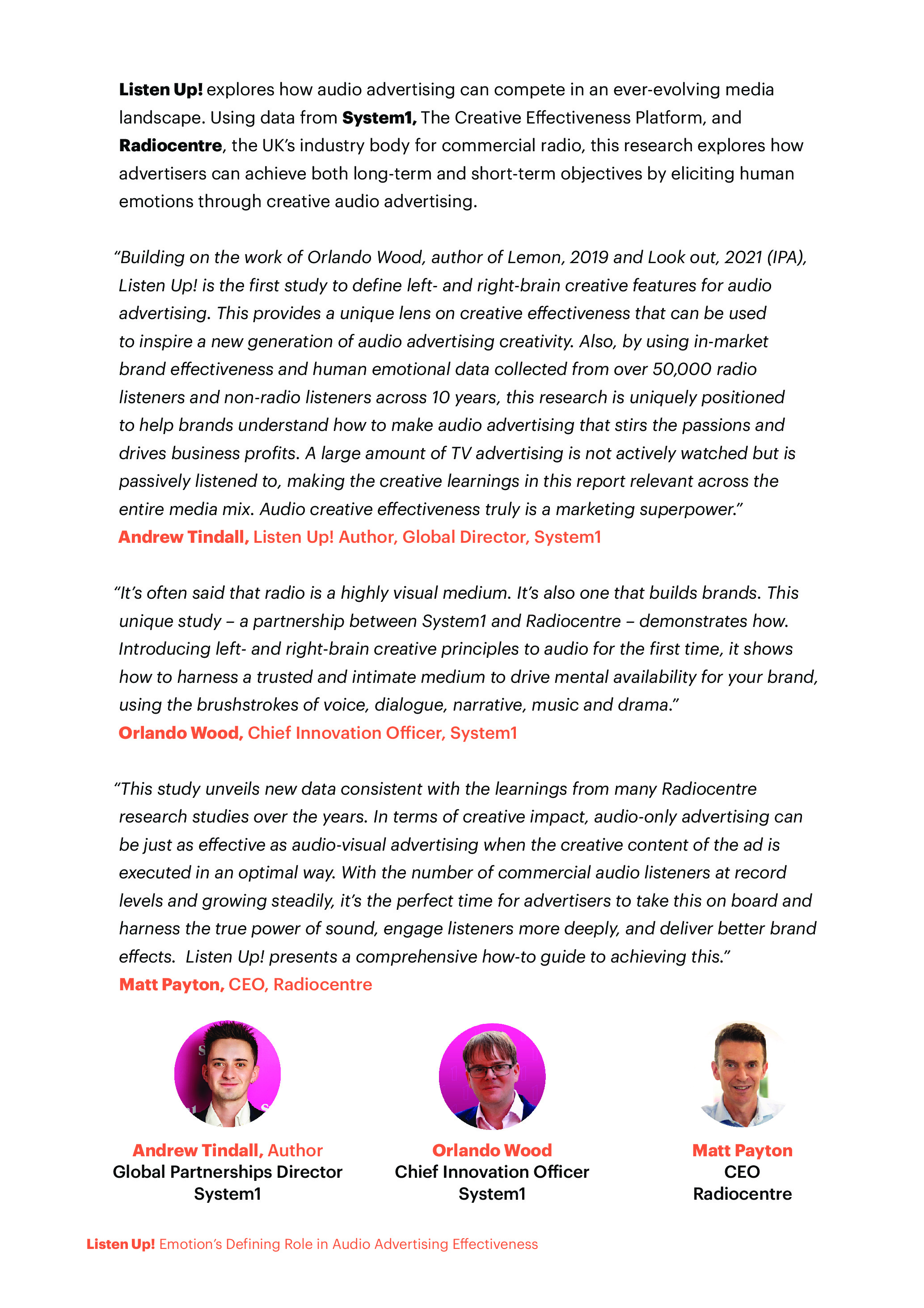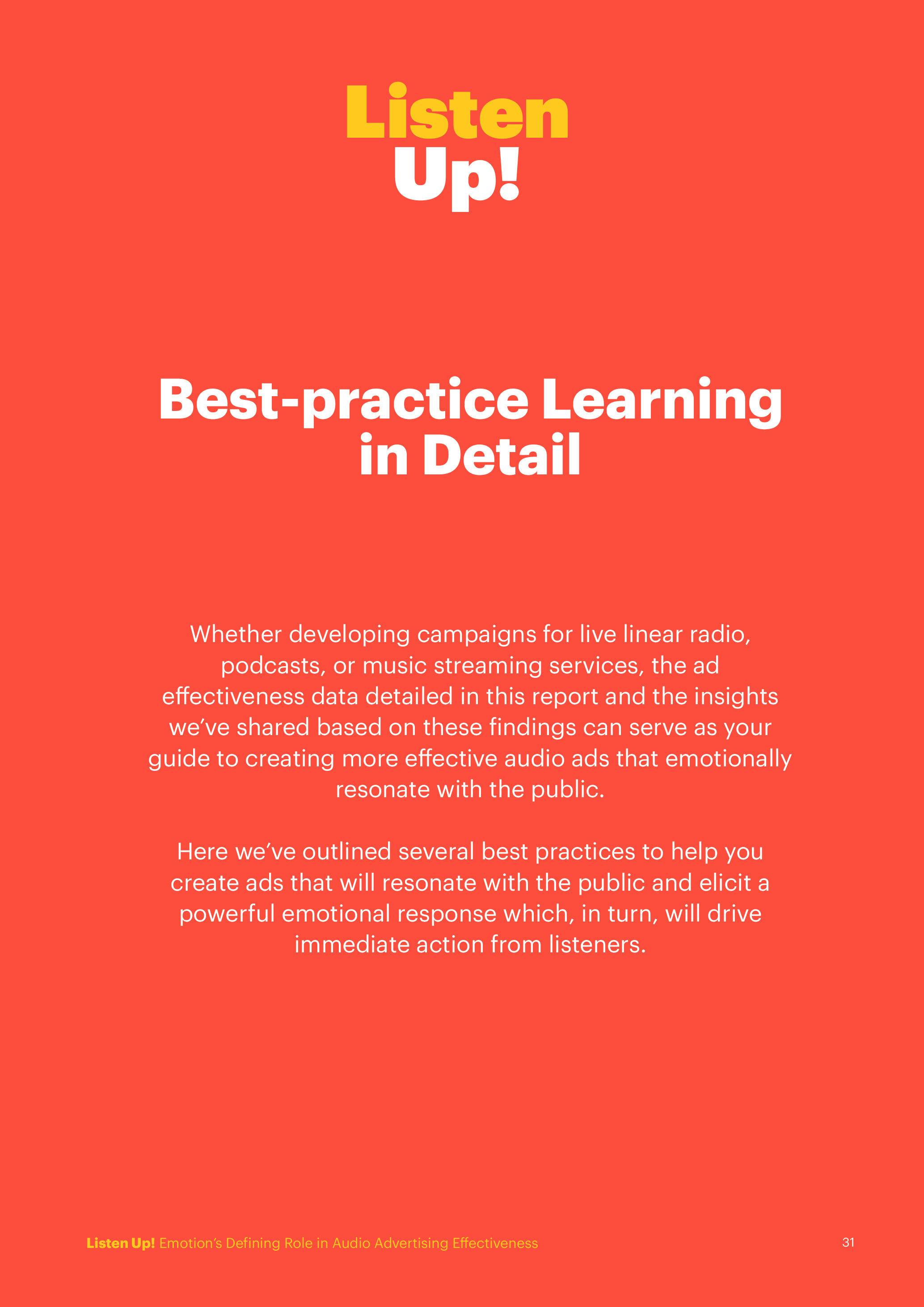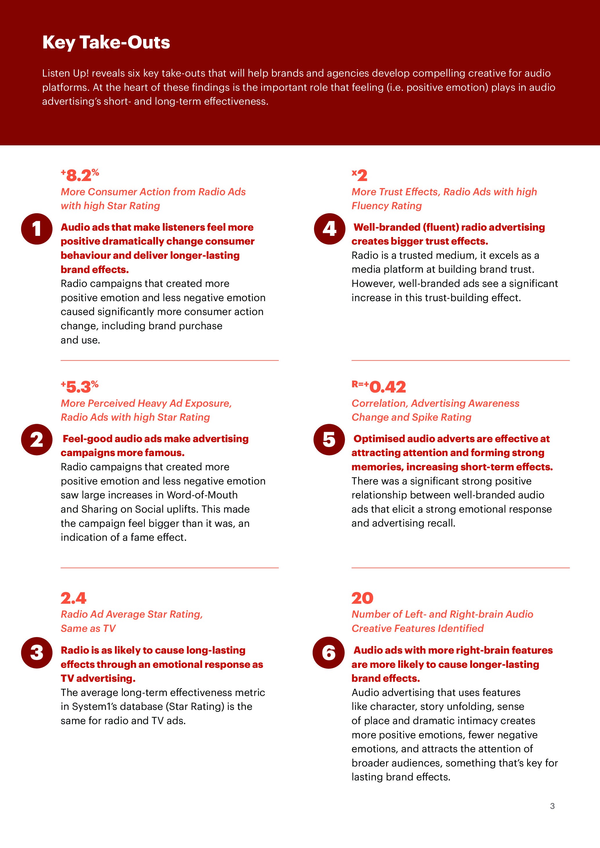 A "Listen Up!" tanulmány, mely egy 10 éves, 50 000 hallgató adatait felölelő kutatás eredményeit mutatja be, felfedi a hatékony rádióhirdetések kulcsfontosságú elemeit. Olvass bele a részletekbe, és szerezd meg azokat az ismereteket, amelyek segítenek hirdetéseidet hosszú távon emlékezetessé tenni, és üzleted számára sikeres eredményeket elérni.